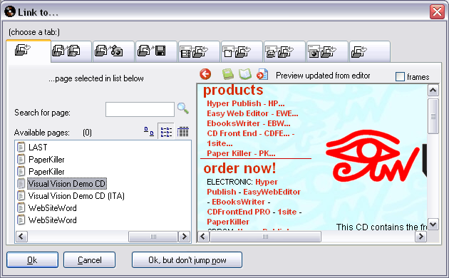You can link to internal pages, Internet addresses (such http://...), other presentation/hypertext, and more. You can even create new pages while linking. You can choose destination even by browsing the preview!